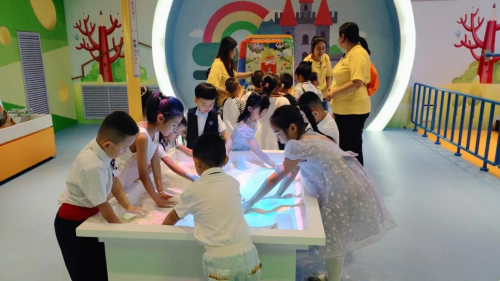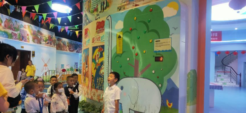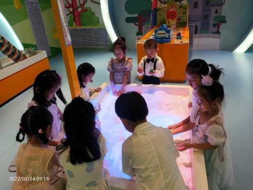 孩子们完成自己的讲解任务后,跟着老师有序参观其它展品,孩子们认真观察、积极讨论着,愉快操作和实践着,直观感受不同展品的神奇之处。