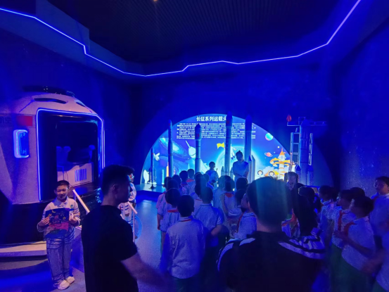 在“行走的思政课”主题实践活动中,东胜区实验小学的老师在市科技馆航空航天展厅为学生们授课,向大家讲授了航空航天以及我国航天事业发展的相关知识,同学们在获得科学知识的同时,提高了爱国意识。