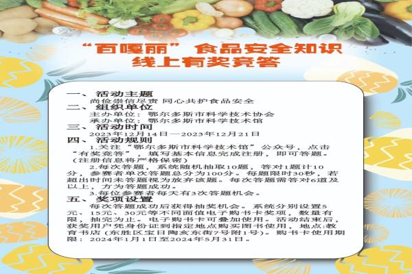 鄂尔多斯市科学技术馆“百嘎丽”食品安全知识线上有奖竞答获奖名单